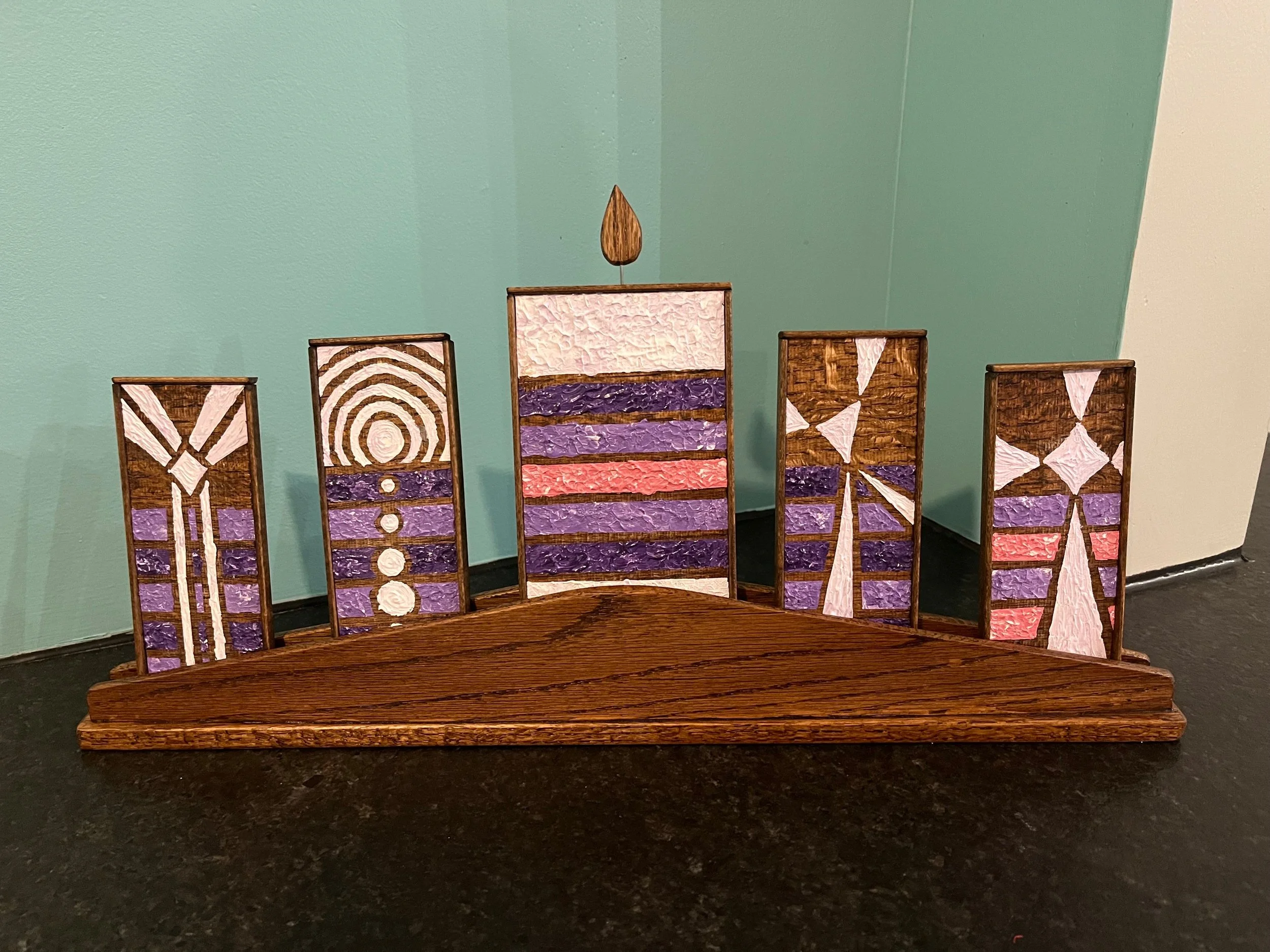 The piece is built so that each week of Advent, another candle can be added to the stand, much like a traditional church Advent wreath.